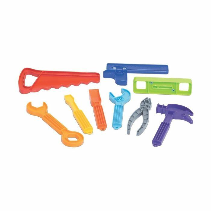 Contém 9 peças: 1 Serrote / 1 Régua de Nivel / 1 Régua Esquadro / 1 Martelo / 1 Alicate / 1 Chave de Fenda / 1 Chave Inglesa / 1 Chave Combinada / 1 Pá