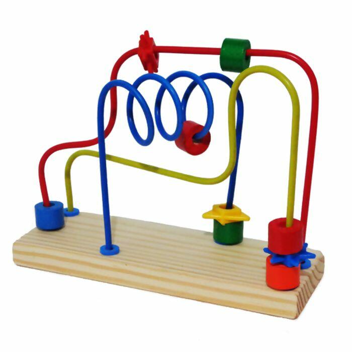 A criança pode passar as diferentes peças de um lado para o outro de cada caminho, isso faz com que decida que peça pegar, como fazer as curvas do aramado, quantas peças levar de um lado ao outro, contribuindo para o desenvolvimento da coordenação motora e o pensamento lógico da criança.