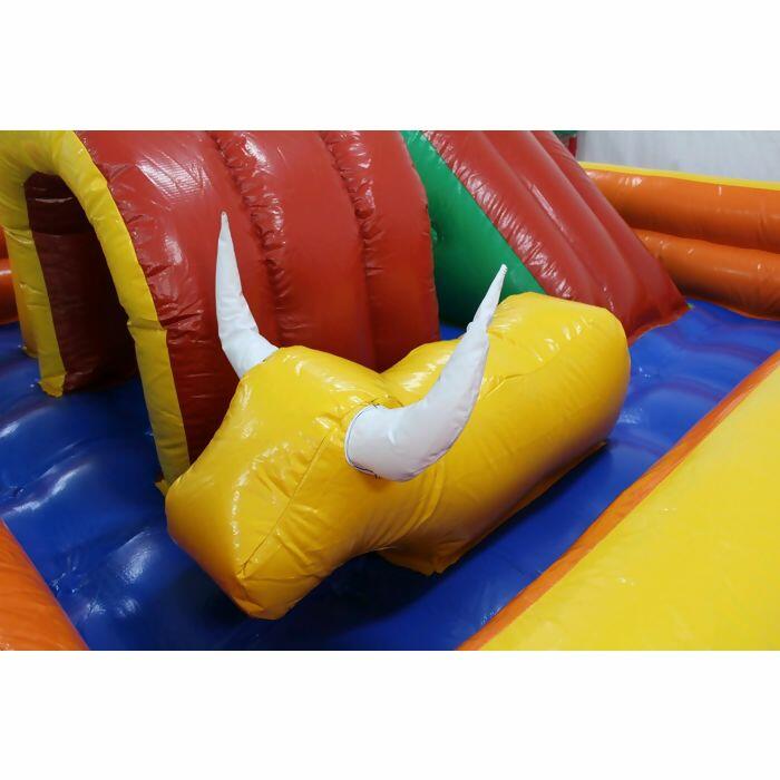 O Multi Park é um brinquedo inflável que além de ser um pula pula também possui atividades que proporcionam ainda mais diversão para as crianças! Este brinquedo possui túnel, tourinho e 2 bastões "joão bobo".
