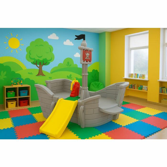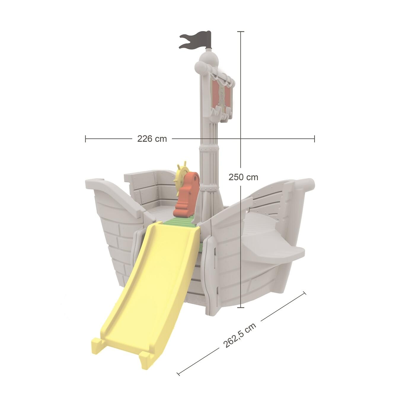 Com design diferenciado que remete às lendárias histórias de piratas, esse brinquedo estimula a imaginação e desenvolve a coordenação motora, a concentração e equilíbrio, além é claro de muita diversão! O Navio dos Piratas Xalingo possui uma escalada que se transforma em escorregador, uma escada de cordas, um mastro, timão, porão e plataforma que vão deixar a brincadeira bem mais divertida.
