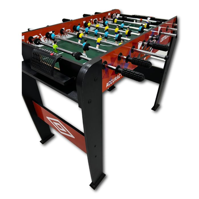 Transforme qualquer ambiente em um verdadeiro campo de futebol com o Pebolim Umbro Accuracy TF Goool, uma mesa de pebolim com design moderno, estrutura resistente e dimensões perfeitas para garantir a diversão de crianças e adultos.