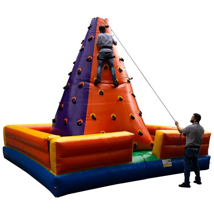 Pirâmide de Alpinismo Inflável - 4,90 x 4,90 x 4,60mUm brinquedo radical para quem gosta de emoção e adrenalina. Simula uma montanha, onde o "alpinista" tenta chegar ao cume no menor tempo possível. Brinquedo de fácil locomoção e armazenagem. Acompanha somente 1 kit de corda e cadeirinha, as demais são vendidas separadamente.