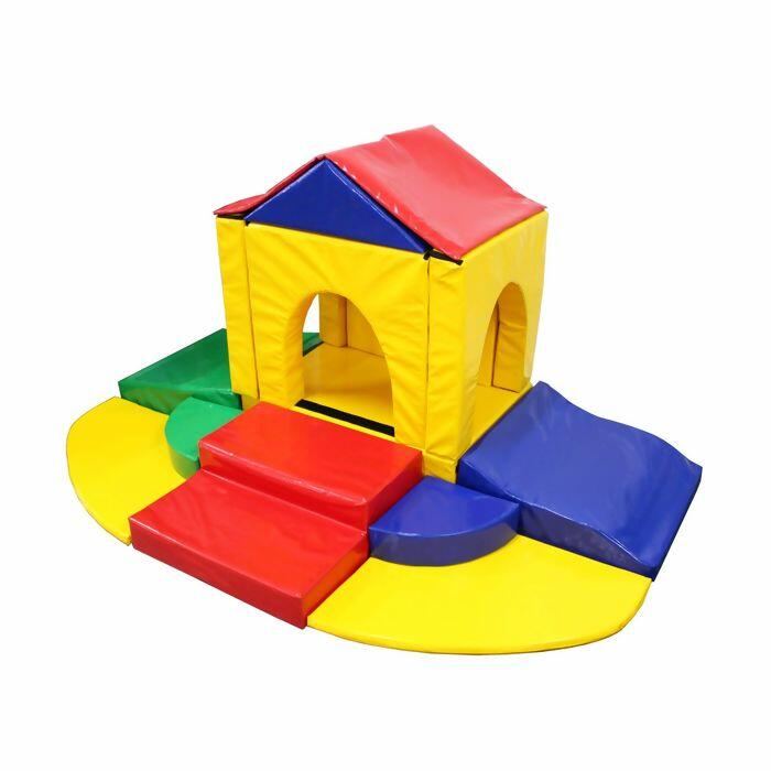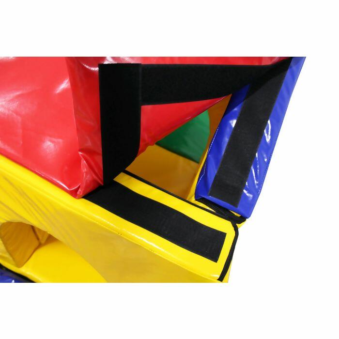 Playground em espuma revestido em bagum, com peças presas por velcro.