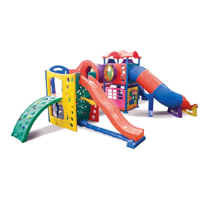 O brinquedo infantil Playground Adventure Absolute Mundo Azul é feito para crianças de 4 a 9 anos e é perfeito para locais como escolas, creches e outros destinados à recreação infantil e estimula a prática de atividades físicas. Produzido com estrutura de aço tubular e pintura eletrostática, o Playground Adventure Absolute Mundo Azul possui: