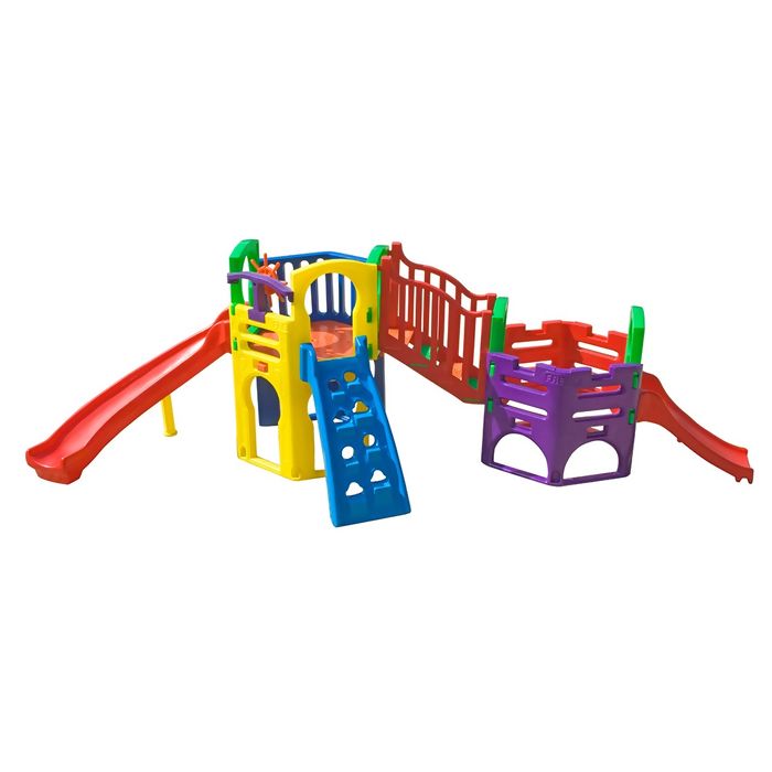 2 módulos :1 alto com plataforma hexagonal e 1 baixo em formato hexagonal sem plataforma, com rampa de escorregador