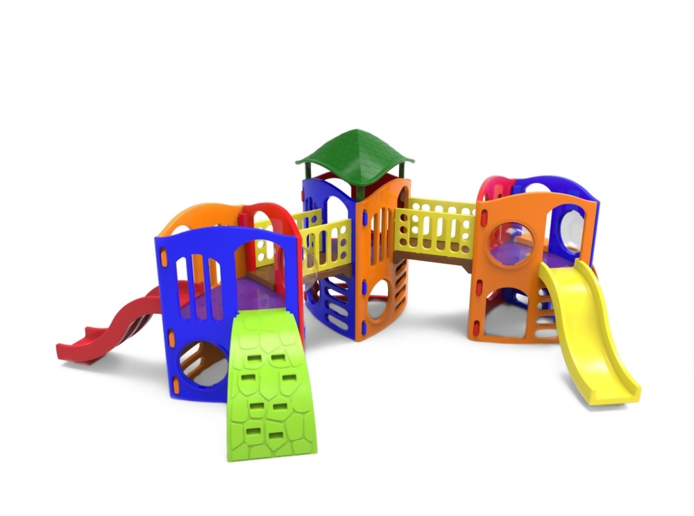 Projetado com encaixes de alta precisão, o playground é montado sem a necessidade de parafusos, proporcionando uma instalação prática, segura e com excelente acabamento.