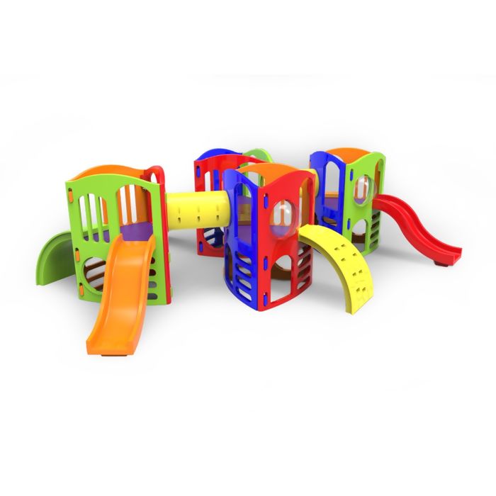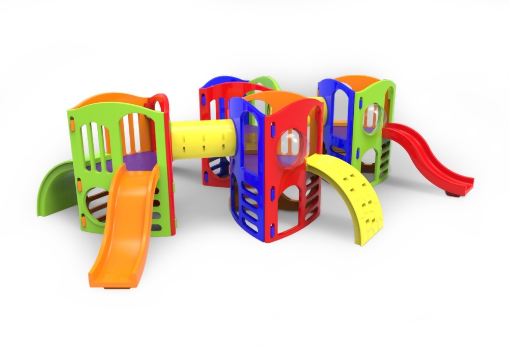 Fabricado pelo processo de rotomoldagem, o playground conta com encaixes de alta precisão, permitindo a montagem sem parafusos, o que garante segurança, praticidade e um excelente acabamento.