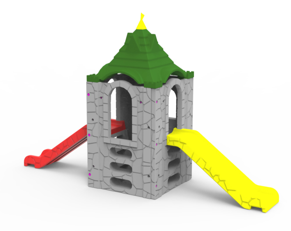 Produzido em plástico rotomoldado de alta qualidade, este playground conta com aditivos antiestáticos e proteção anti-UV, que preservam sua cor original e garantem resistência aos efeitos dos raios solares. Um conjunto projetado para oferecer durabilidade, segurança e diversão em qualquer ambiente.