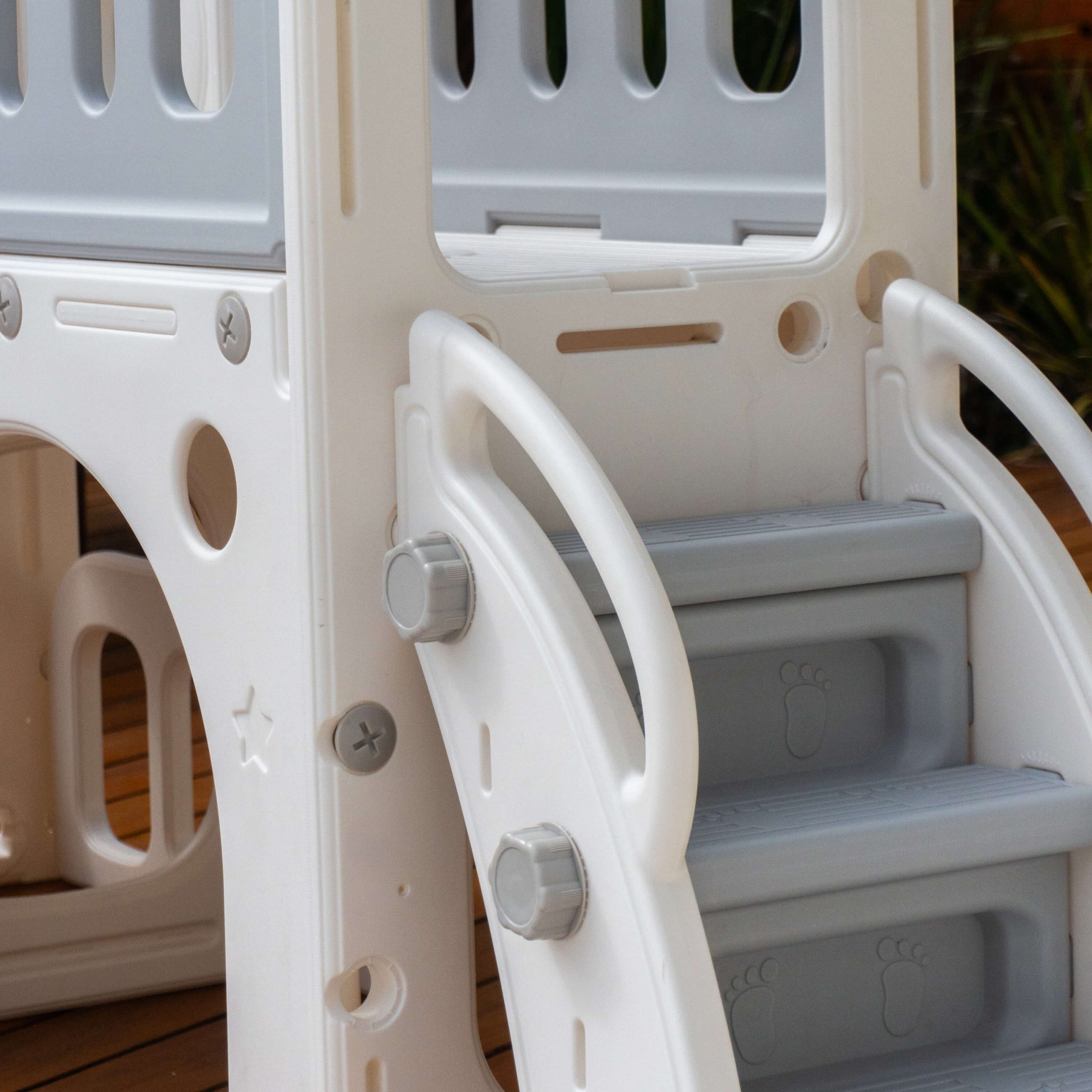 Oferece um espaço seguro, com bordas arredondadas e piso antiderrapante