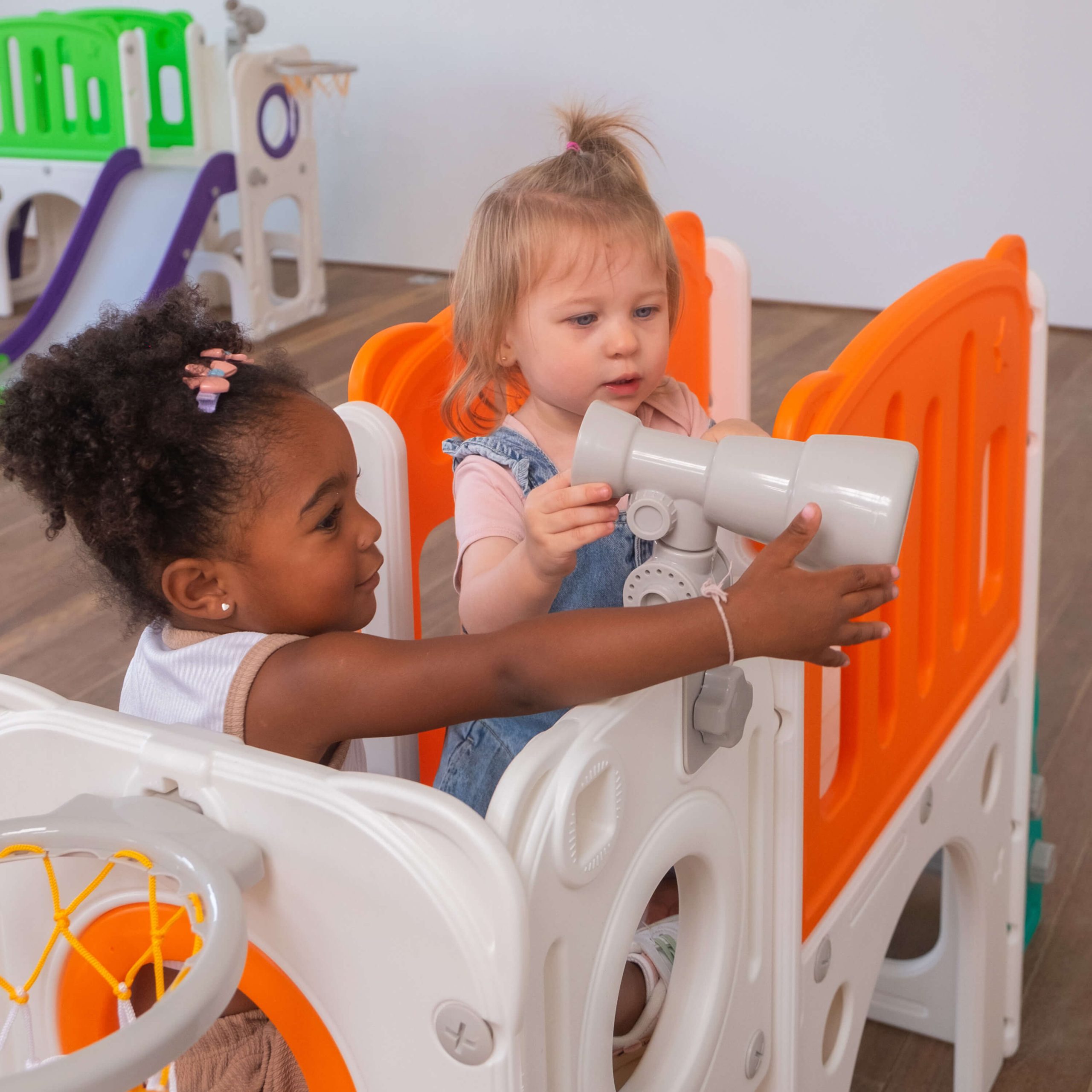 Oferece um espaço seguro, com bordas arredondadas e piso antiderrapante