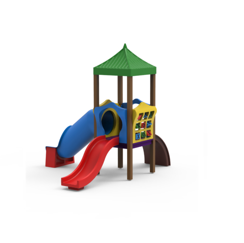 Para garantir diversão variada, o playground conta com 1 escalada curva com 8 orifícios de apoio, que auxilia no desenvolvimento do equilíbrio e da força, além de 1 escorregador médio e 1 escorregador tubular pequeno, proporcionando diferentes experiências de deslize. O conjunto também inclui 1 jogo da velha integrado, incentivando a interação social e o raciocínio lógico, além de 2 fechamentos em formato de arco, que complementam o design e aumentam a segurança.