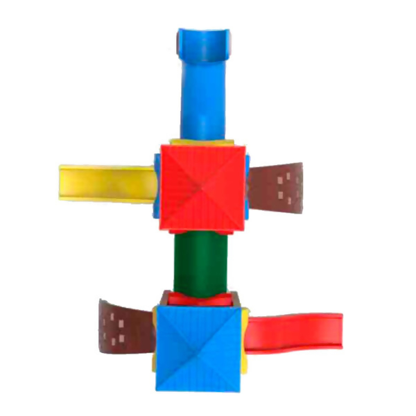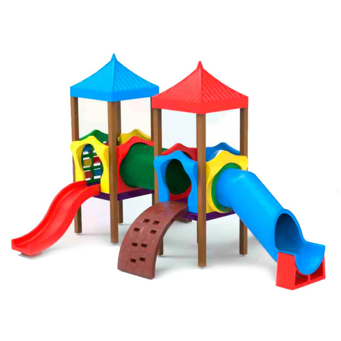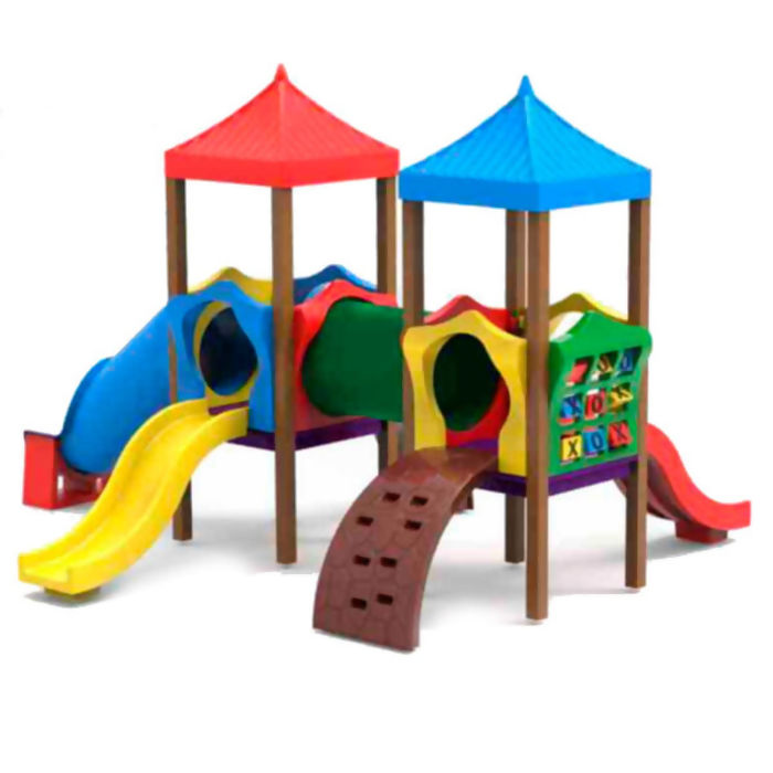 Para incentivar a coordenação motora e o equilíbrio, o playground conta com 2 escaladas curvas com 8 orifícios de apoio. A diversão é ampliada com 2 escorregadores médios, 1 escorregador tubular pequeno e um jogo da velha, que estimula a interação social e o raciocínio lógico.