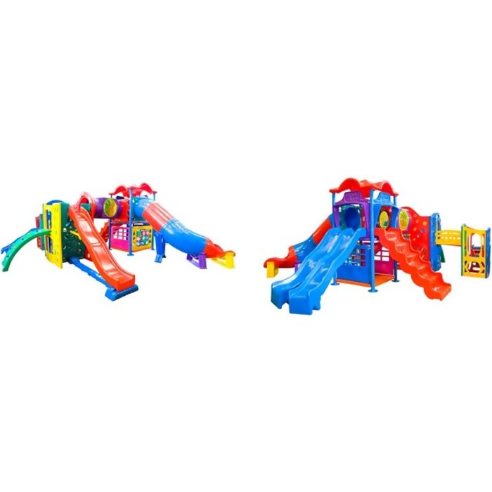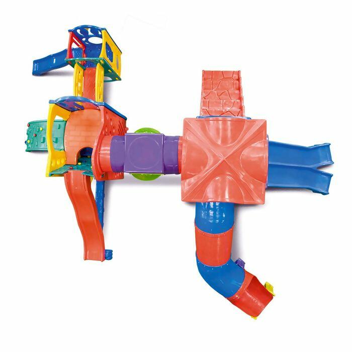 O Playground Super Adventure Absolute Mundo Azul é um brinquedo infantil perfeito para incentivar a pratica de atividades físicas nas crianças. Ele é ideal para crianças de 4 a 9 anos e possui as seguintes características: * 3 módulos com piso central, sendo 1 coberto, possuem arcos e grades de proteção e são conectados por ponte, túnel com escotilha;* 3 escorregadores (1 tubular, 1 tobogã e 1 em ondas);* 1 piscina de bolinhas com 500 bolinhas inclusas;* 1 escada dupla para acesso a plataforma;* 1 parede de rapel em curva;* 1 parede de escalada interna;* 1 painel interativo com jogo da memória;* 2 laterais com assento.
