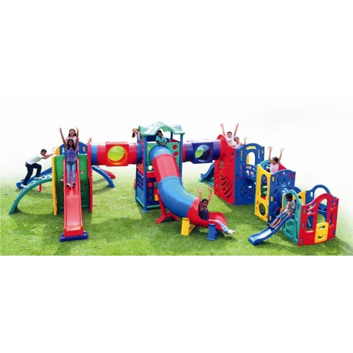 * 7 escorregadores com postes de sustentação (1 tubular, 2 com prancha ondulada, 1 em curva, 1 médio em forma de tobogã e 2 pequenos);