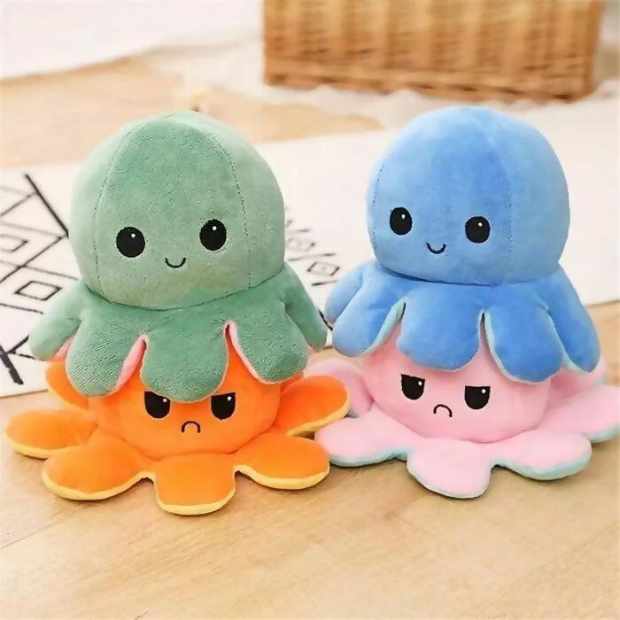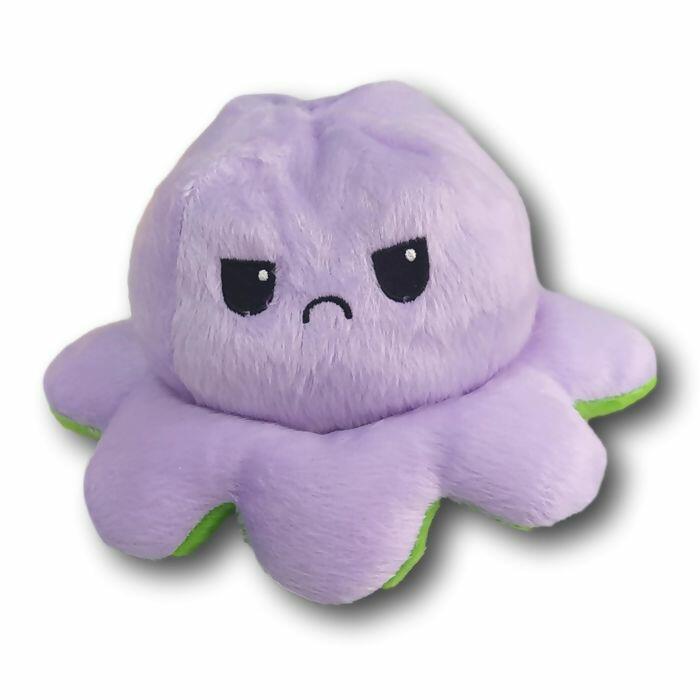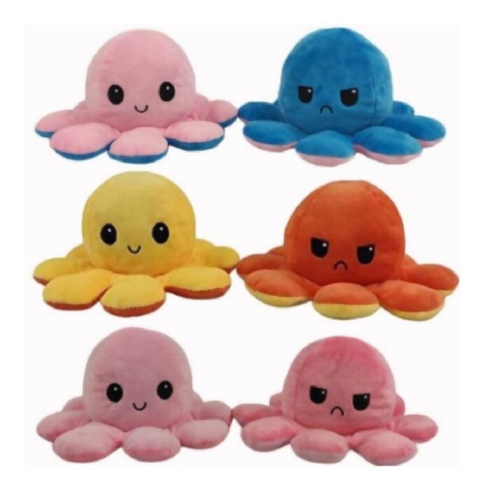 Polvo em pelúcia reversível. Demonstre que está bravo ou feliz!