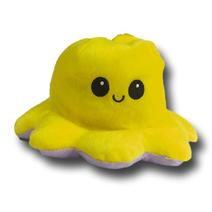 Polvo Tiktok Humor Bravo Feliz Reversível Pelúcia 20 cm Amarelo/Lilás
