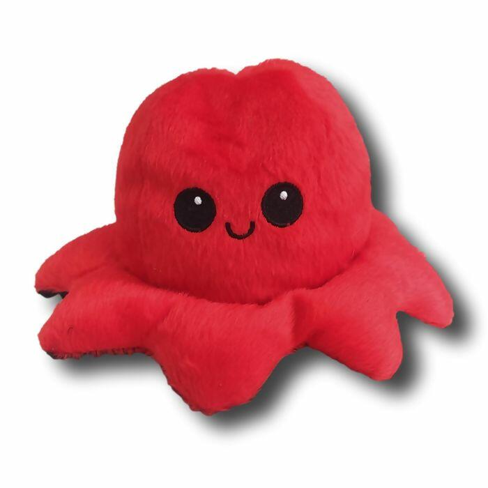 Polvo em pelúcia reversível. Demonstre que está bravo ou feliz!