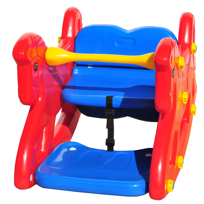O Pônei Sossego 2 em 1 Mundo Azul é uma gangorra com dupla função, de um lado uma linda cadeirinha de balanço, e virando de ponta cabeça vira uma mesinha de refeições ou para desenhar.