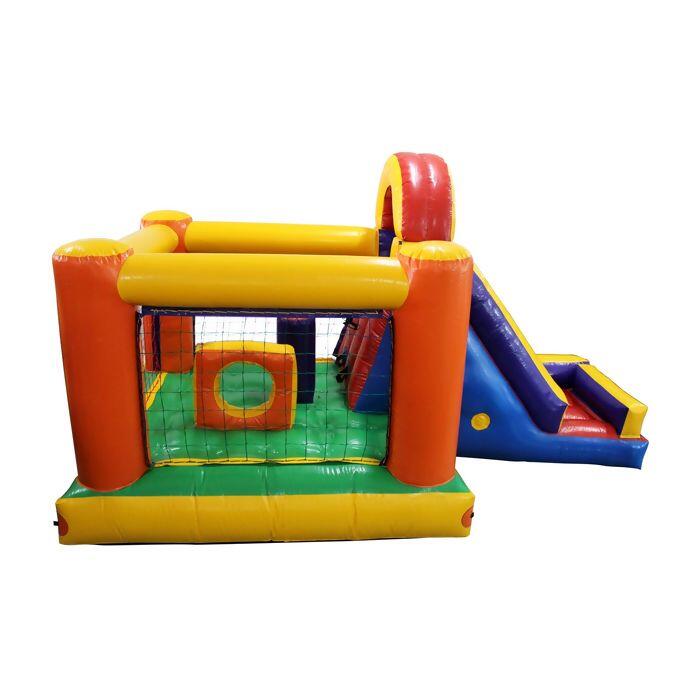 Este inflável é ideal para quem tem pouco espaço e ao mesmo tempo não abre mão de ter várias atividades para oferecer a-às crianças. Ideal para buffet infantil e locação. Produzido em lona vinílica KP1000,