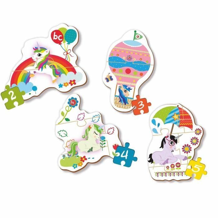 Quebra Cabeça Progressivo Unicórnio com 2, 3, 4, 5 Peças- Brincadeira de Criança