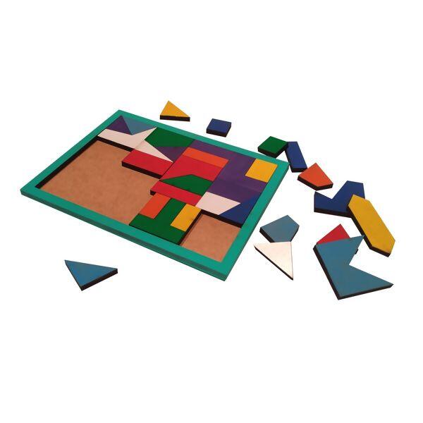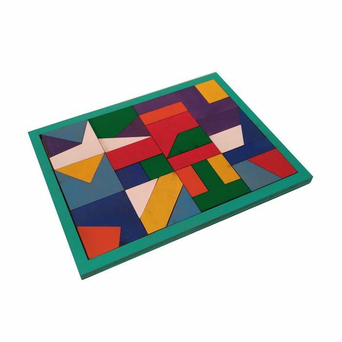Quebra Cabeça QuadradinhosBase de madeira medindo 17 x 22 cm com 32 peças geométricas coloridas que quando encaixadas formam quadrados. Promove o desenvolvimento de habilidades motoras e estimula o raciocínio lógico. *Imagem meramente ilustrativa. As cores do produto podem variar.