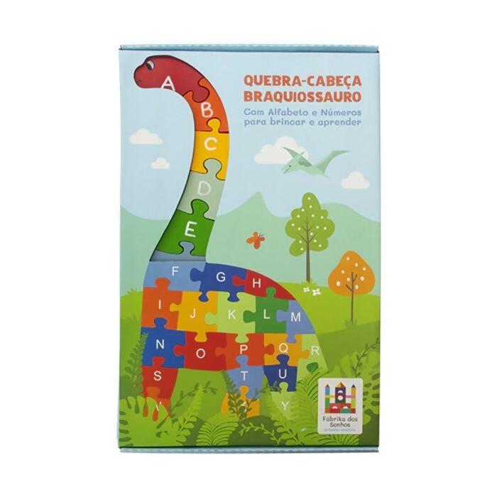 Quebra-Cabeça Educativo Gigante em Madeira Dinossauro Braquiossauro com Alfabeto e Números