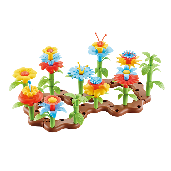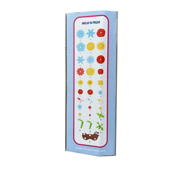 Com esse kit as crianças poderão combinar peças para criar diversas flores diferentes.
