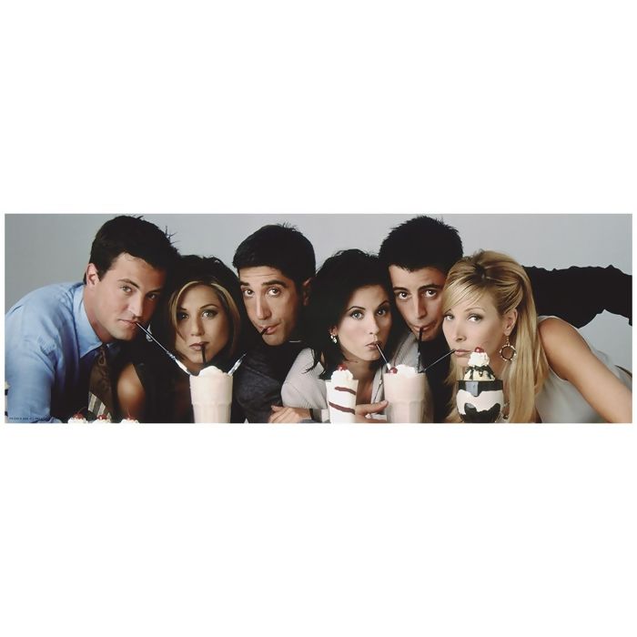 Para os Fãs da série Friends! Monte o seu quebra cabeça com essa imagem panorâmica da cena icônica em que Rachel, Monica, Phoebe, Joey, Chandler e Ross estão tomando deliciosos milkshakes.