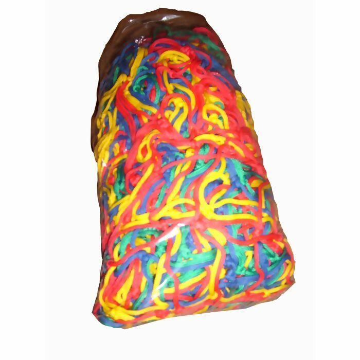 Rede de malha multicolorida confeccionada a mão, com fio de poliamida (tecido). Malha 05.