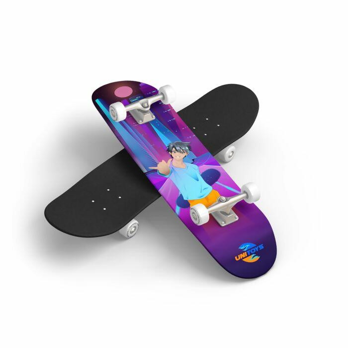 O Skate Semi Profissional da Unitoys é super moderno e tem cores e desenhos marcantes. As 4 rodas dão um maior equilíbrio deixando a brincadeira mais segura. Produzido com materiais de alta qualidade, os skates roubam a cena pelo seu conforto e praticidade, seu sistema reforçado promove uma melhor fixação e estabilidade ao pé do skatista.
