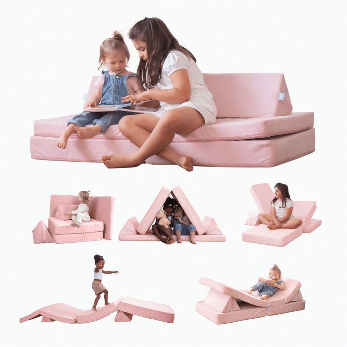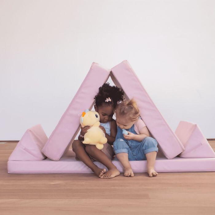 Um sofá de brincar montessori que estimula a criatividade, onde cada montagem se torna uma grande aventura.