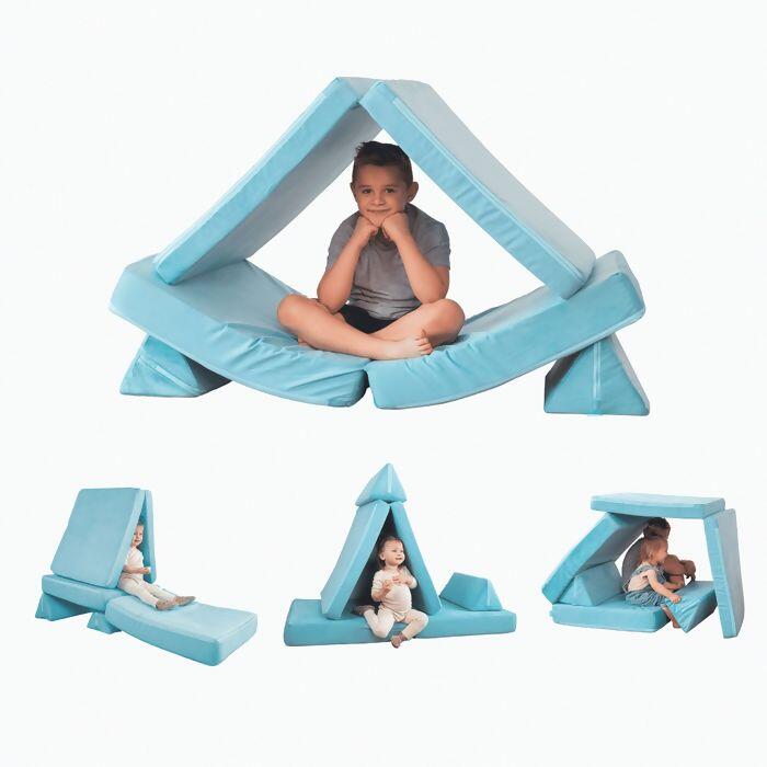Um sofá de brincar montessori que estimula a criatividade, onde cada montagem se torna uma grande aventura.
