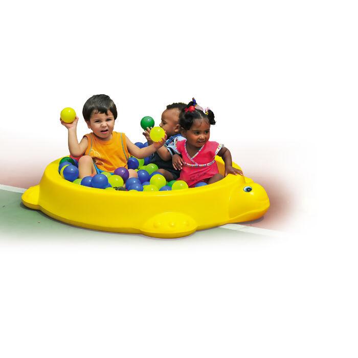 Tanque Jabuti Mundo Azul pode ser utilizado com água, areia ou bolinhas. É ótima para pequenos espaços, com tampa para proteger de animais e da chuva. Pode ser usado como acessório em escorregador.