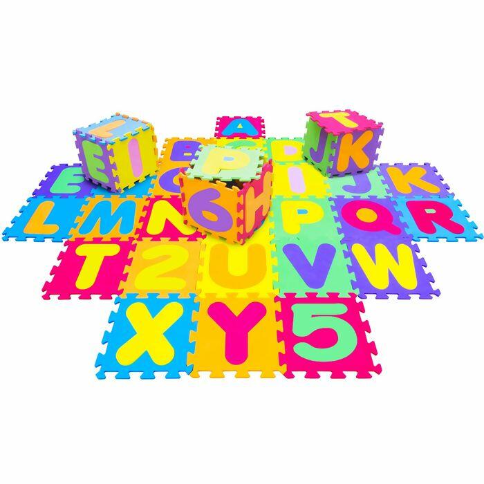Composição do kit: 1 Tapete EVA Alfanumérico com 36 peças de 28x28 com 8mm de espessura