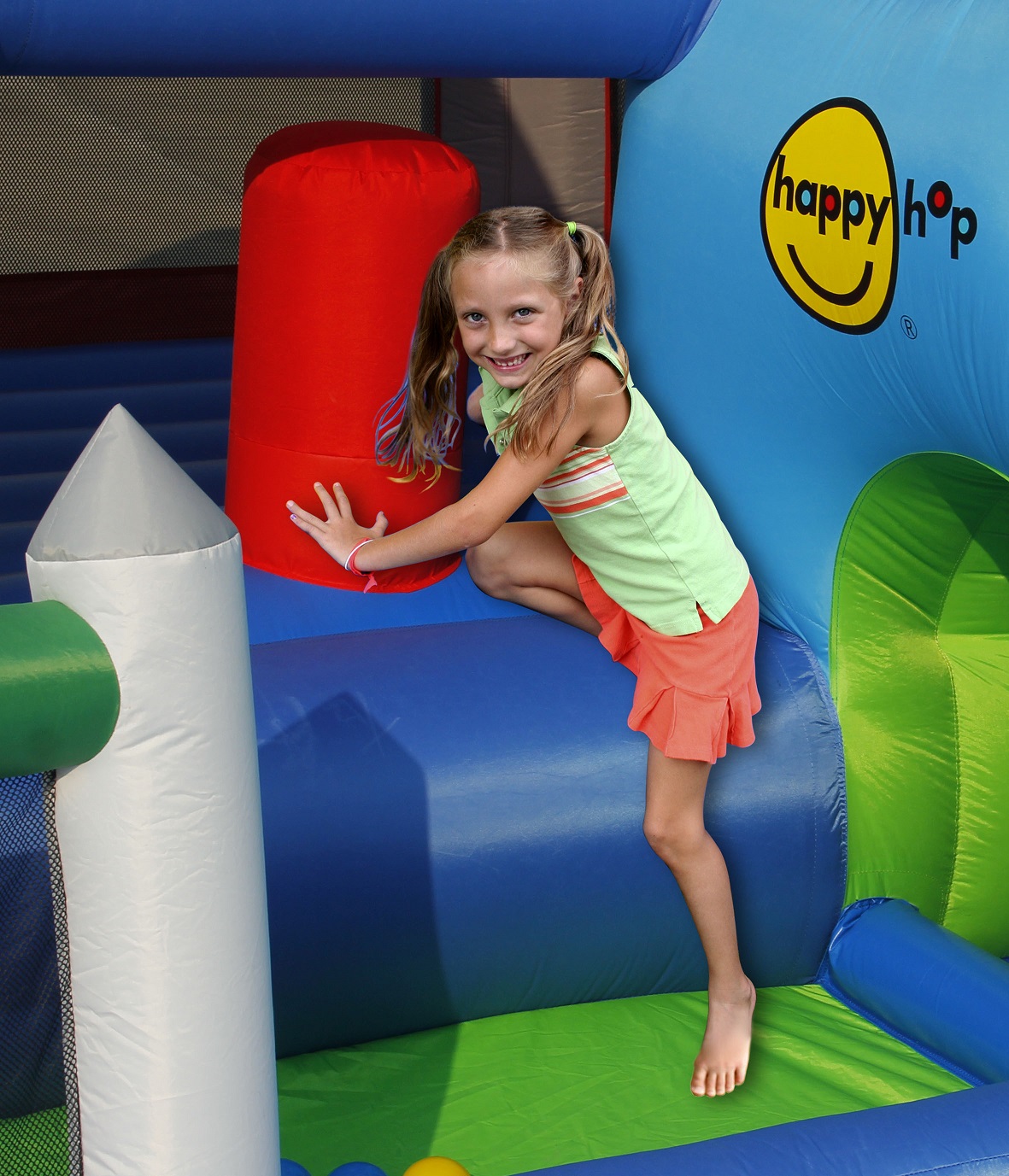 - Área de salto espaçosa e escorregador para alta energia e alegria garantidas.