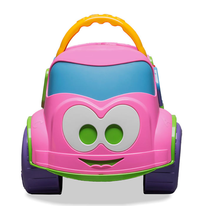 Na parte de trás do produto tem uma porta que simula um “porta-malas” para o bebê brincar de retirar as pecinhas por lá.